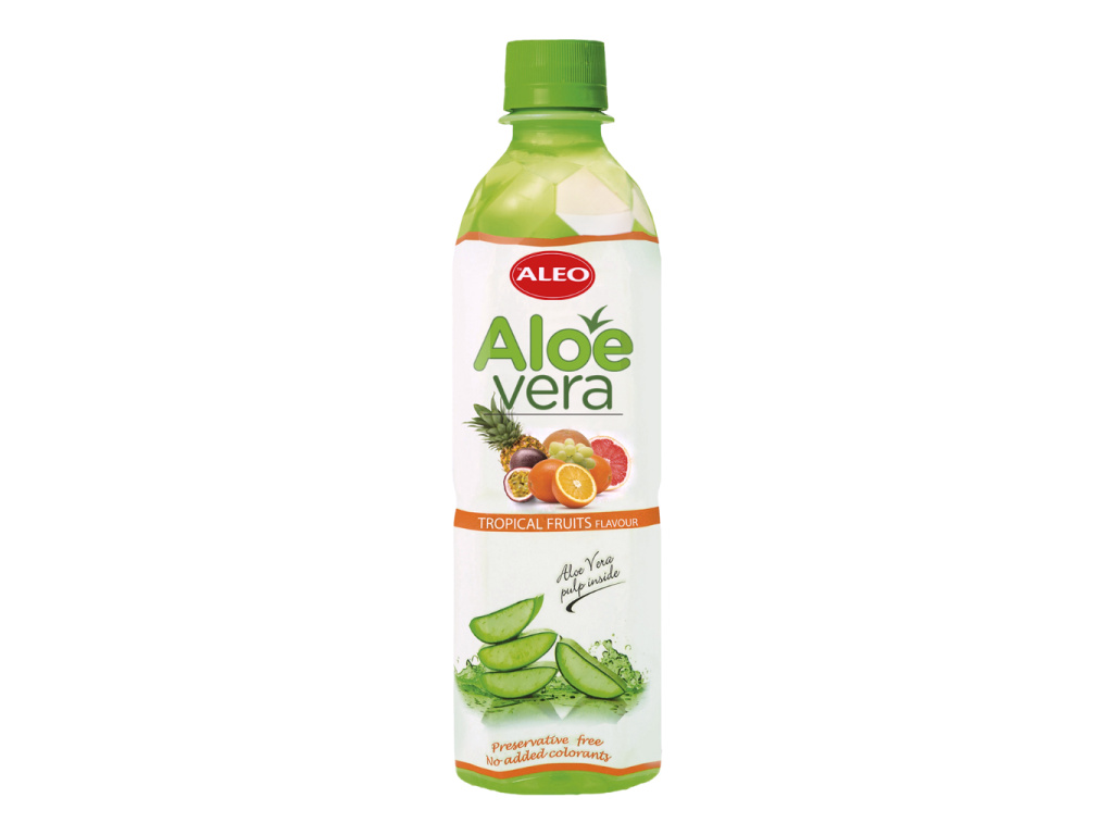Složení: voda, aloe vera 30 % (dužina aloe vera, aloe vera gel prášek), cukr, pomerančová šťáva 3 %, regulátory kyselosti (kyselina citrónová, citrát sodný, mléčnan vápenatý), antioxidant kyselina askorbová, emulgátor gellan guma, příchuť tropického ovoce