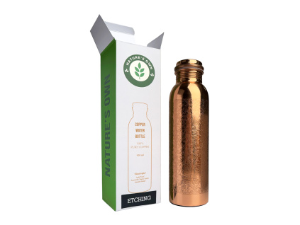 Čistá měděná láhev se vyrábí ručně v Indii a je vhodná na čistou neperlivou vodu. Stačí večer před spaním láhev naplnit a nechat odstát. Ráno po probuzení vodu vypijte.
