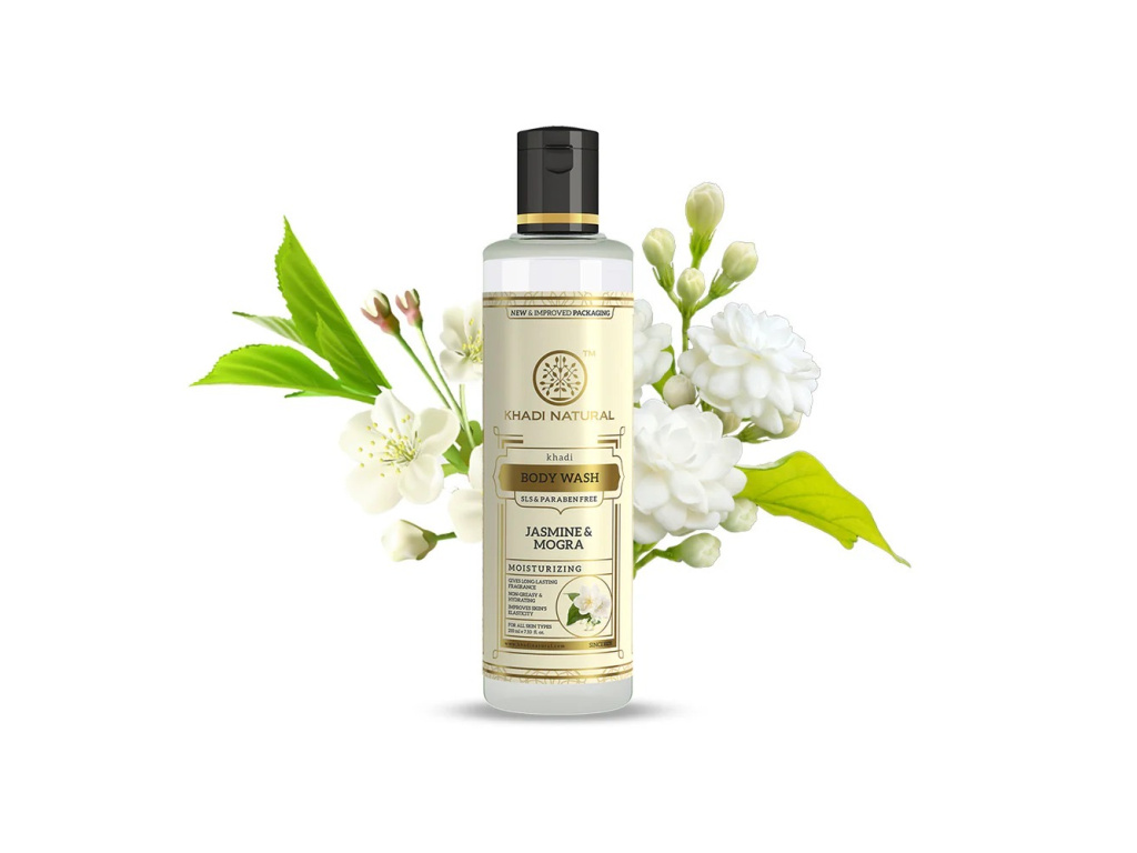 Ájurvédský sprchový gel Jasmín & Mogra je navržen tak, aby poskytoval jemnou péči všem typům pokožky. Založený na rostlinné mycí bázi, gel šetrně čistí a hydratuje pokožku, zanechávajíc ji vláčnou a hebkou s dlouhotrvající smyslnou vůní květin. Díky výjimečné kombinaci jasmínu a mogry zlepšuje pružnost pokožky a dodává jí zdravý a zářivý vzhled.